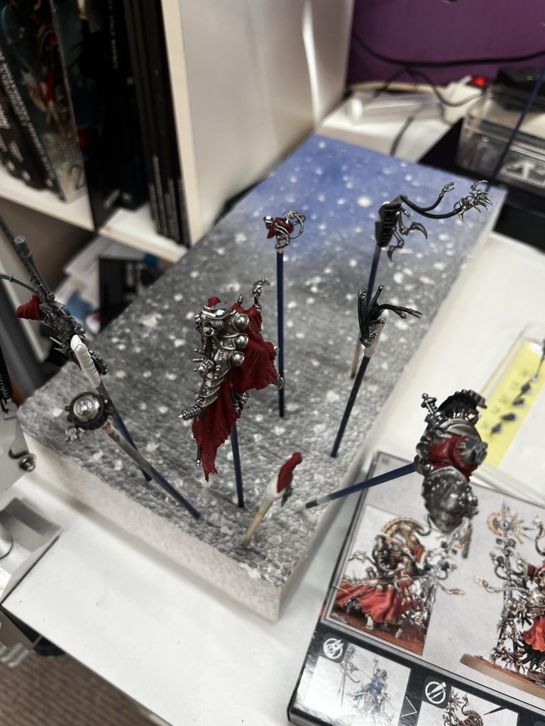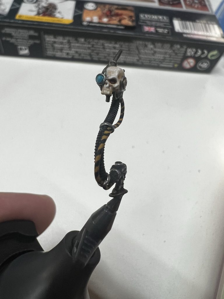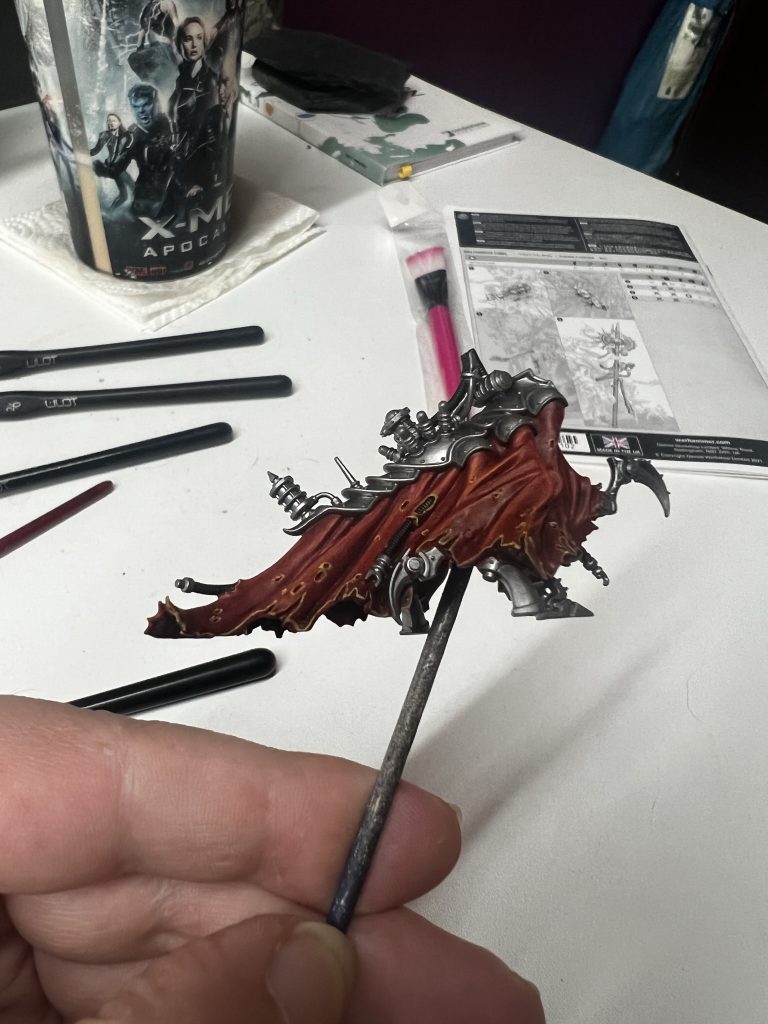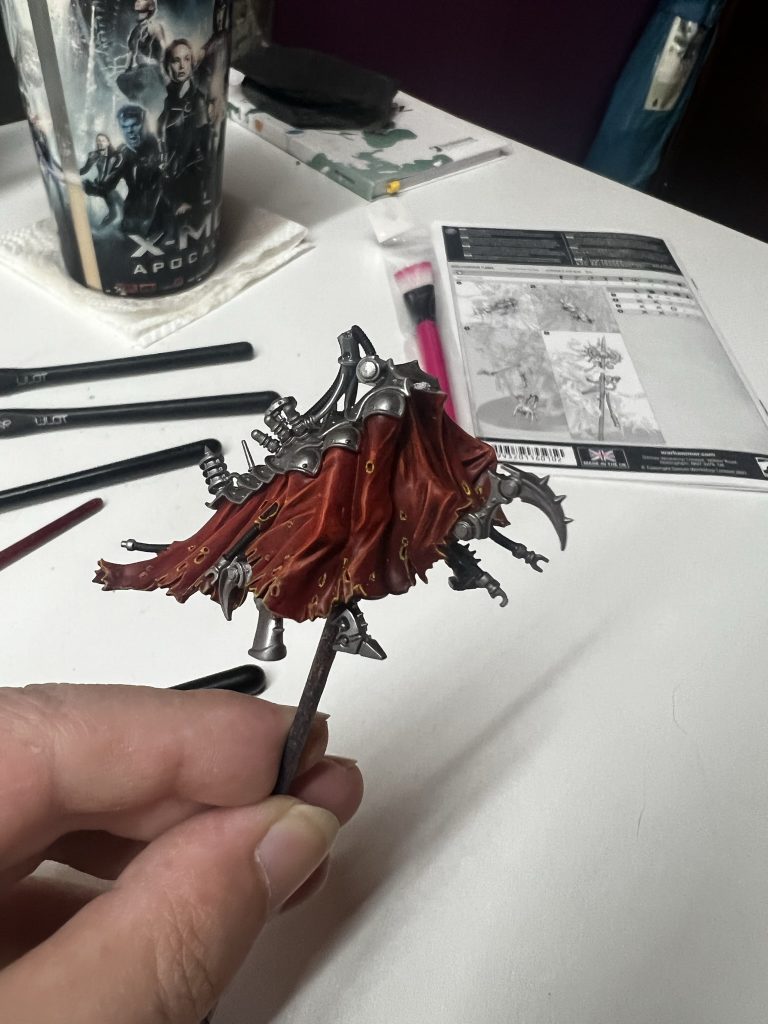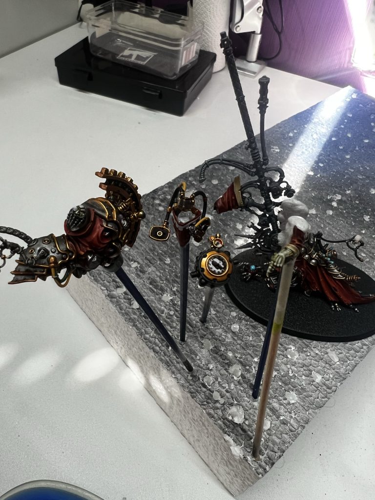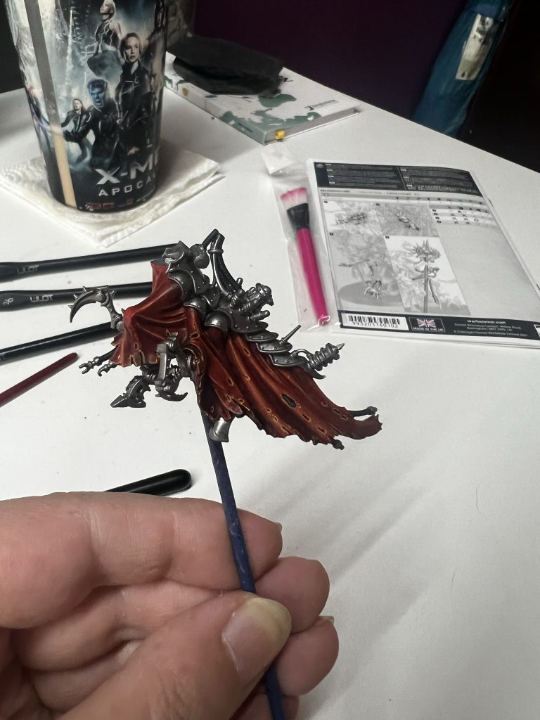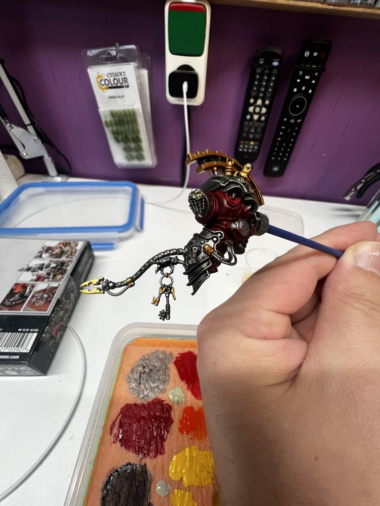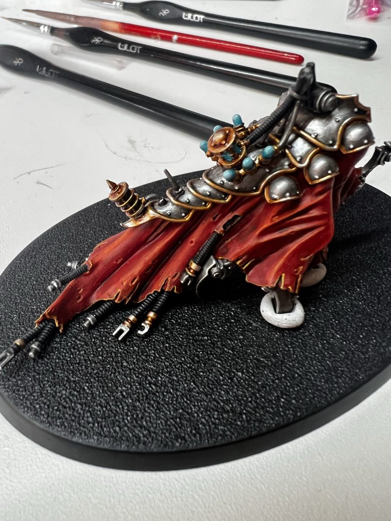 Mehr Maschiene als Mensch, Belisarius Cawl schreitet mit überragender Größe über das Schlachtfeld. Getragen wird sein Körper von vielen kleinen, an Insektenbeine erinnernden Stelzen. Über Zehntausend Jahre alt, Archmagos Dominus, Fabriklord, Lexico Arcanus und anerkannter Magos Biologis. Ein sehr schönes Modell das nicht einfach zu bemalen ist.