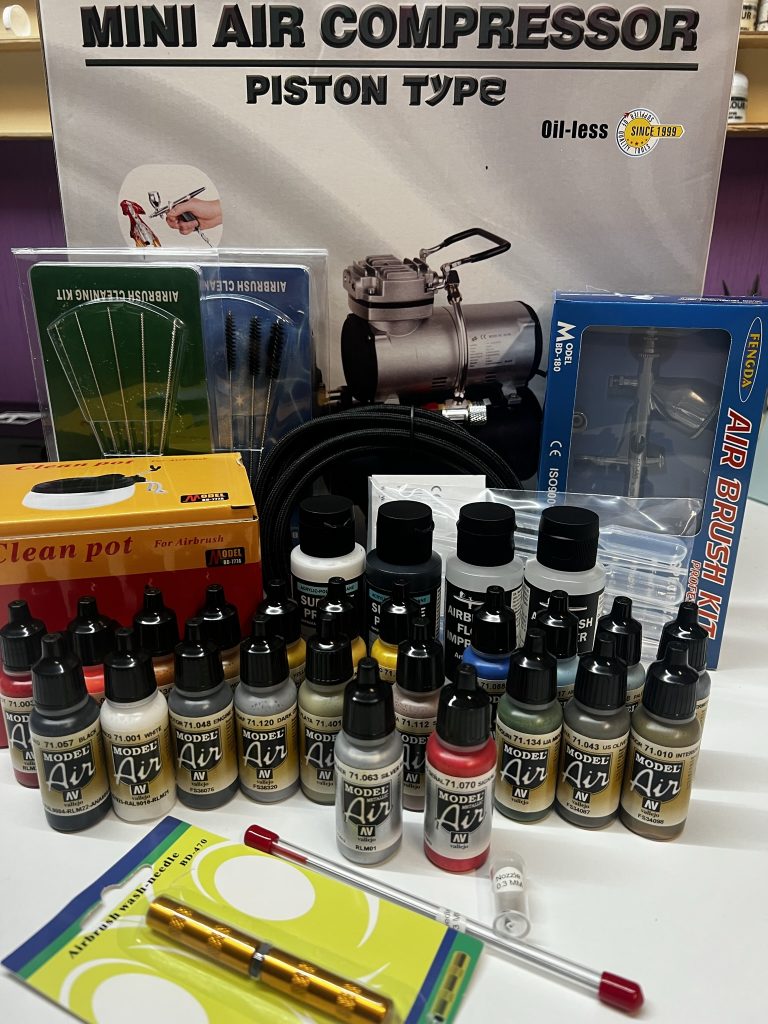Leztendlich habe ich mich für ein Starterset von Fengda entschieden mit einem Kompressor der einen Lufttank hat und einer grundsoliden Airbrush die zum Start erstmal reicht.