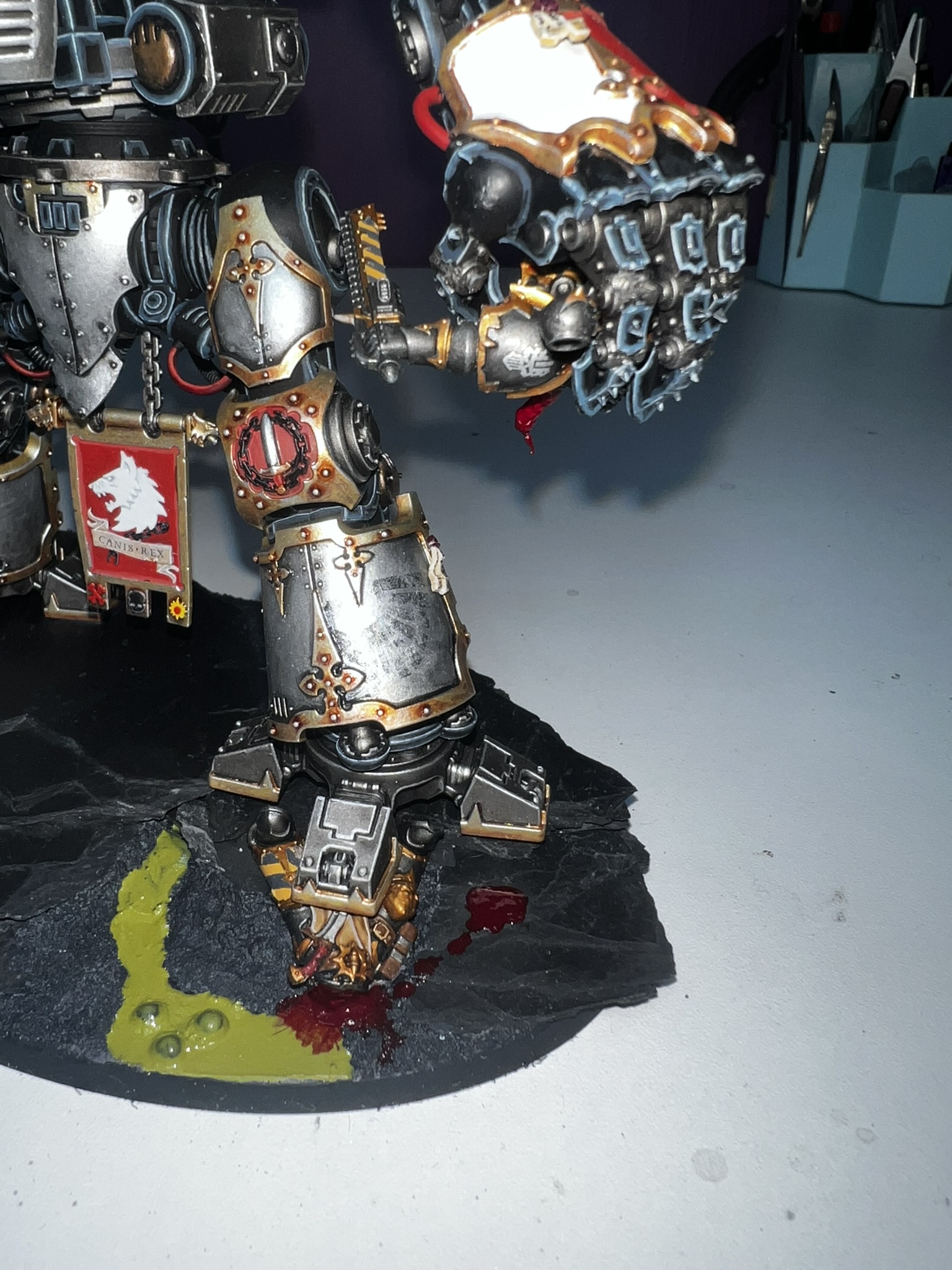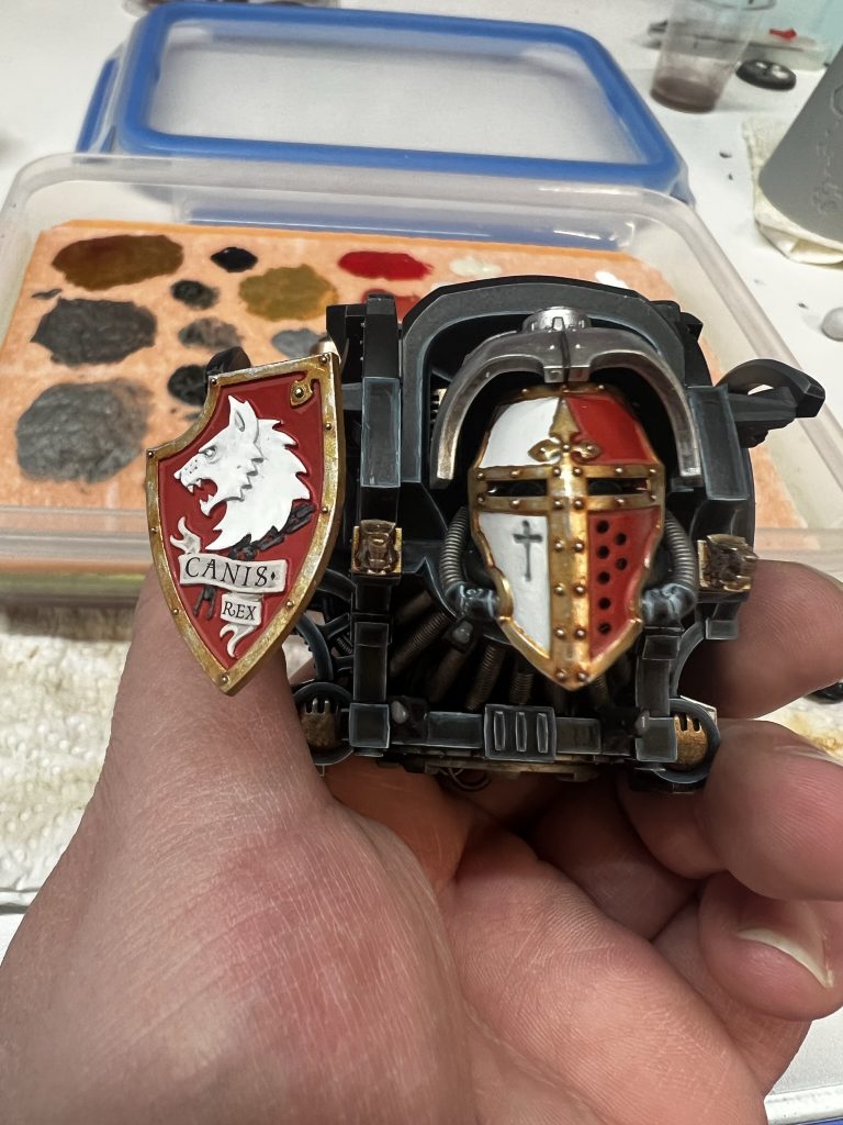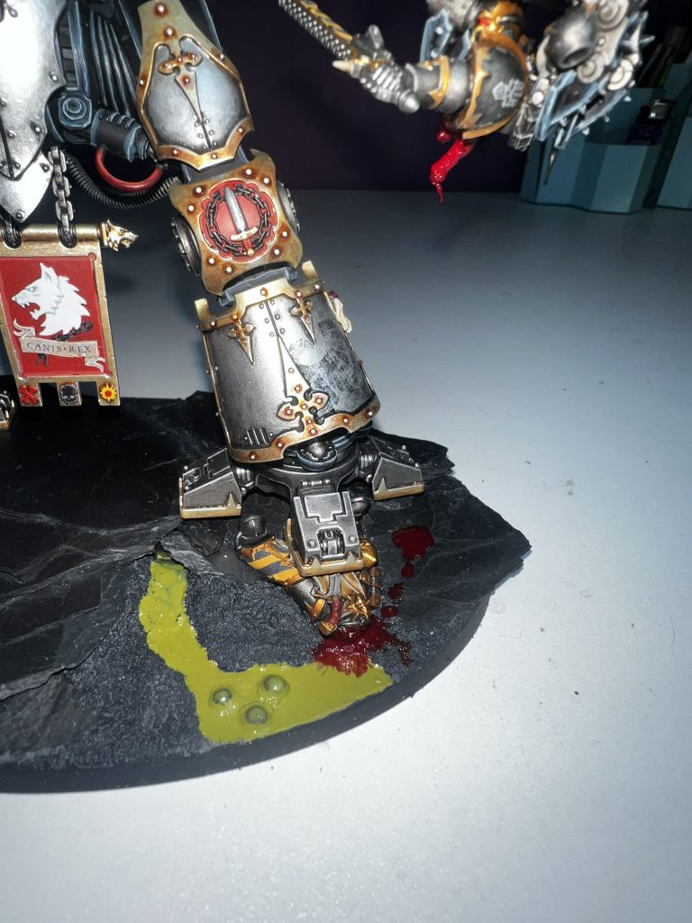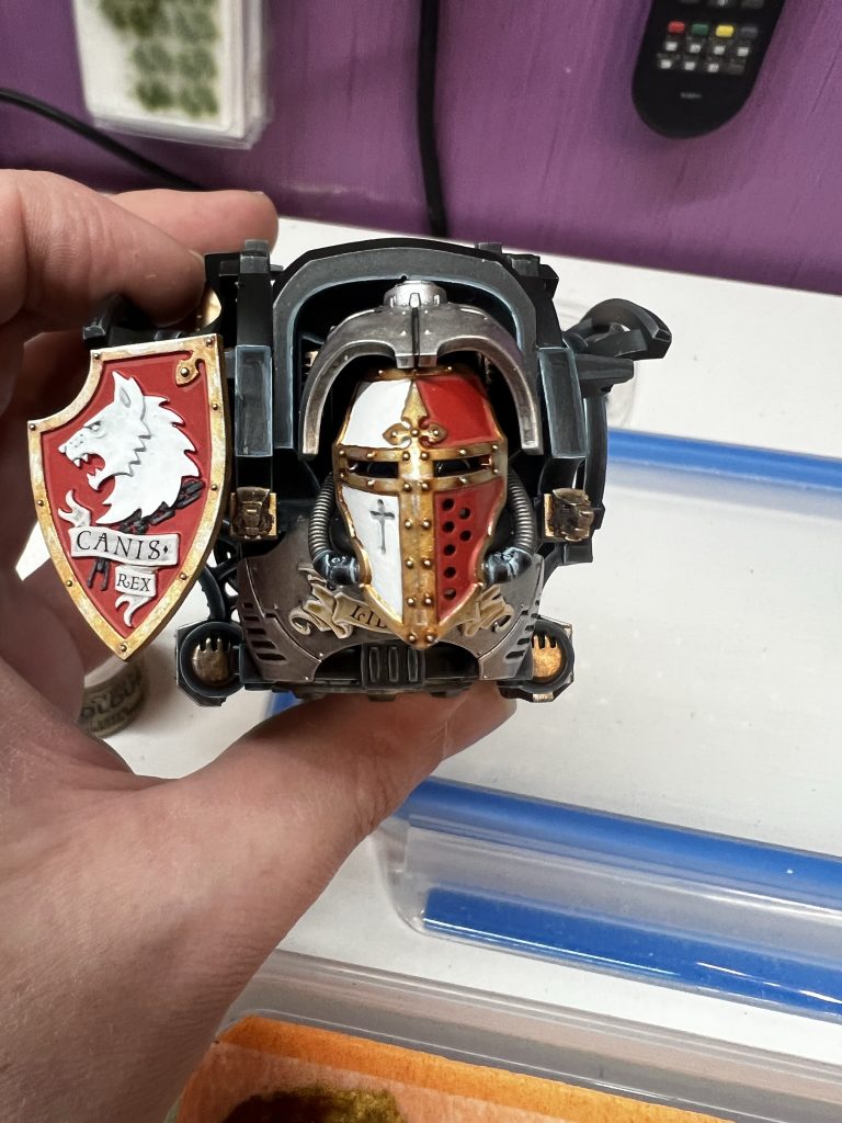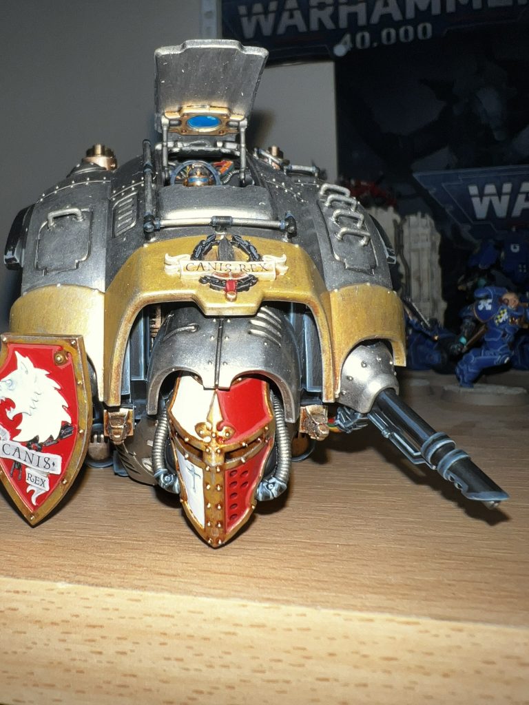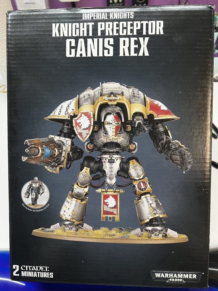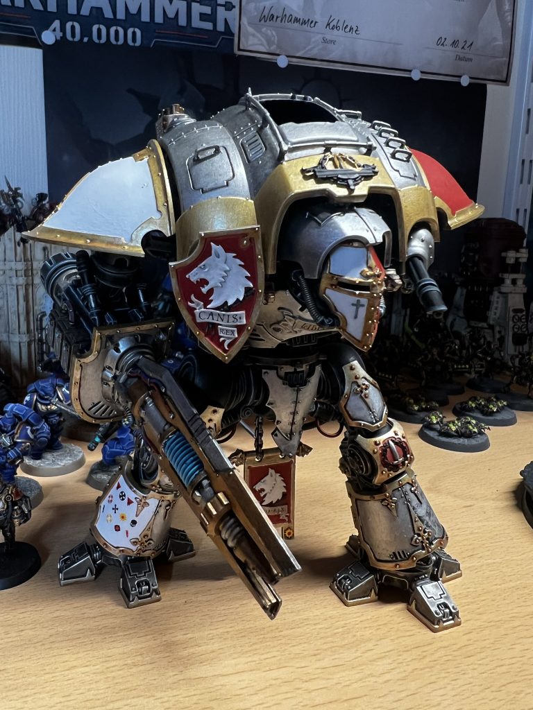 Ich habe mich natürlich für Canis Rex entschieden. Canis Rex ist ein Knight Preceptor mit Eigennamen der dem Folterkeller der Iron Warriors entkommen ist und seit diesem Tag die Anhänger des Chaos mit Kraft und Wut bestraft.