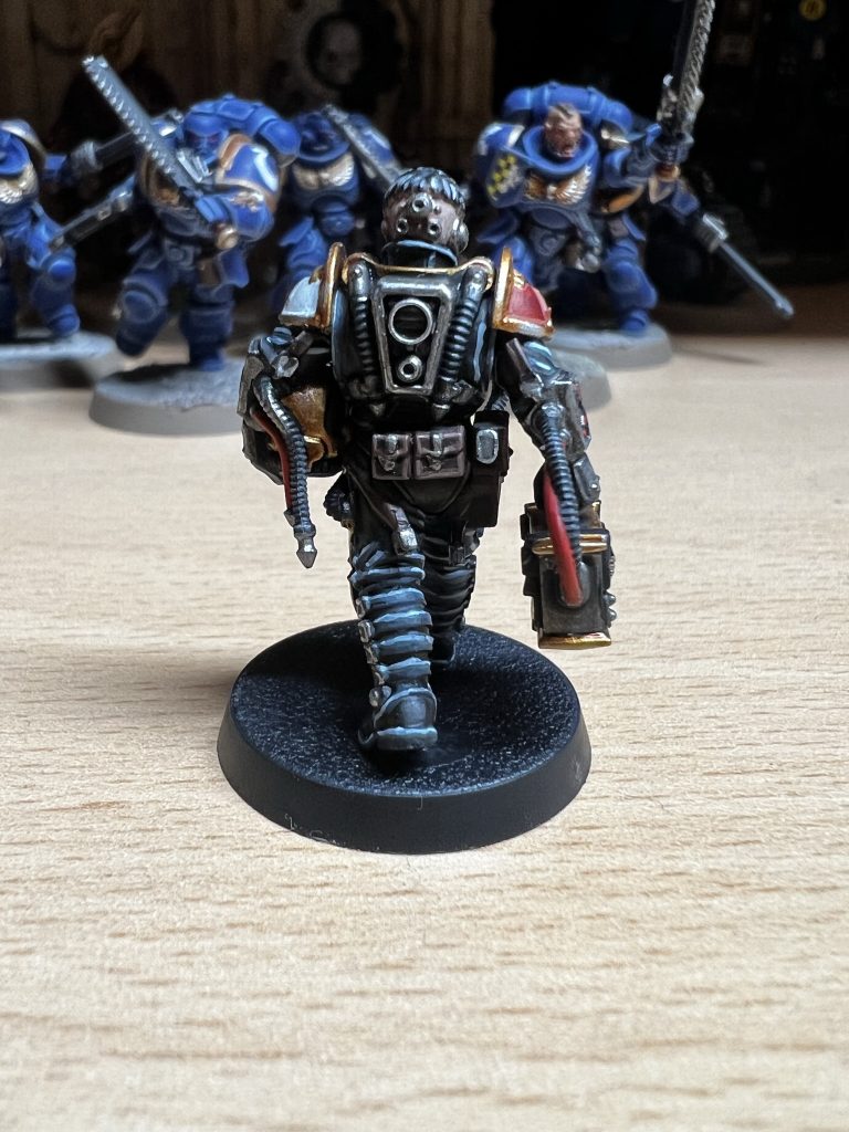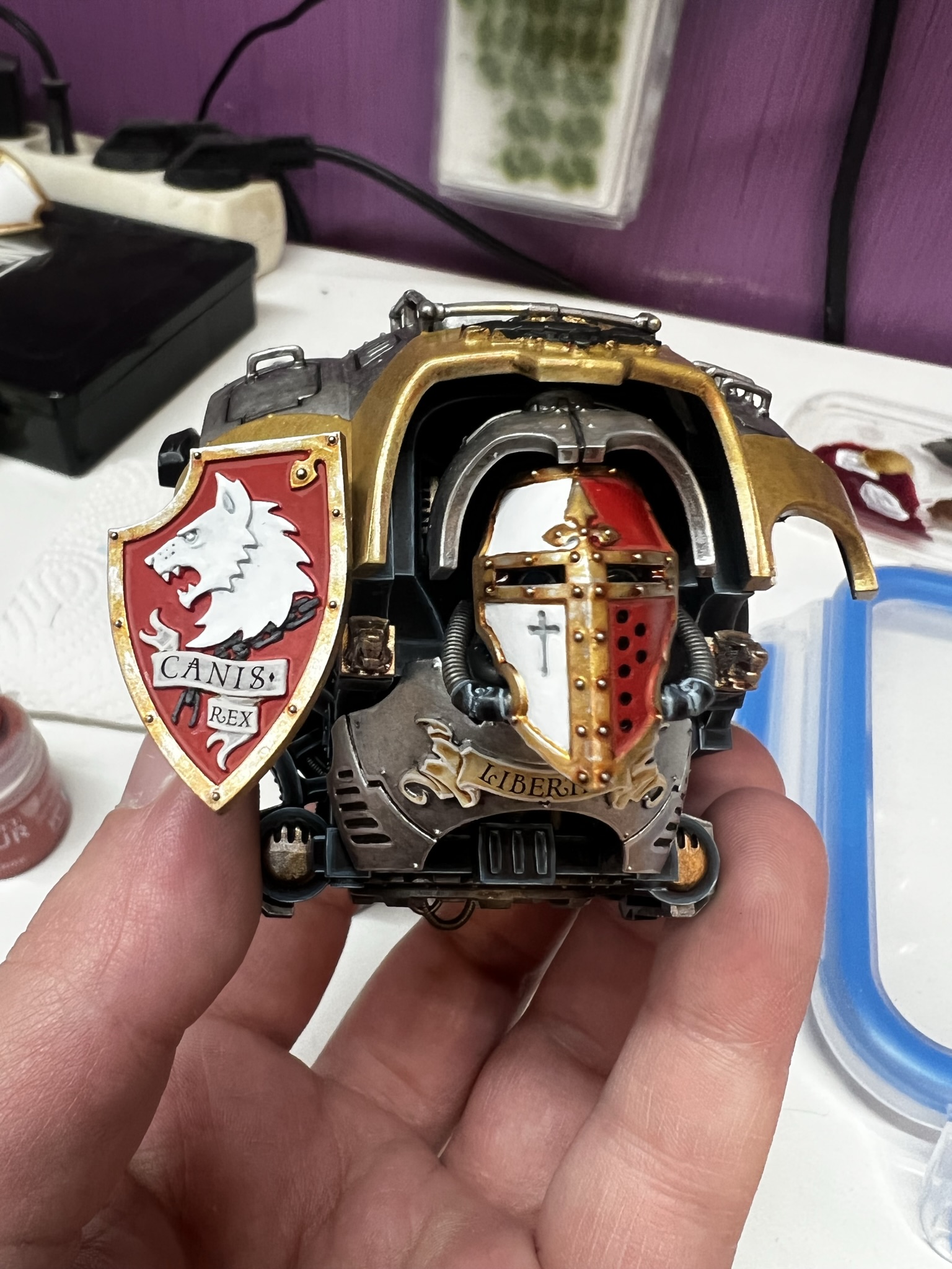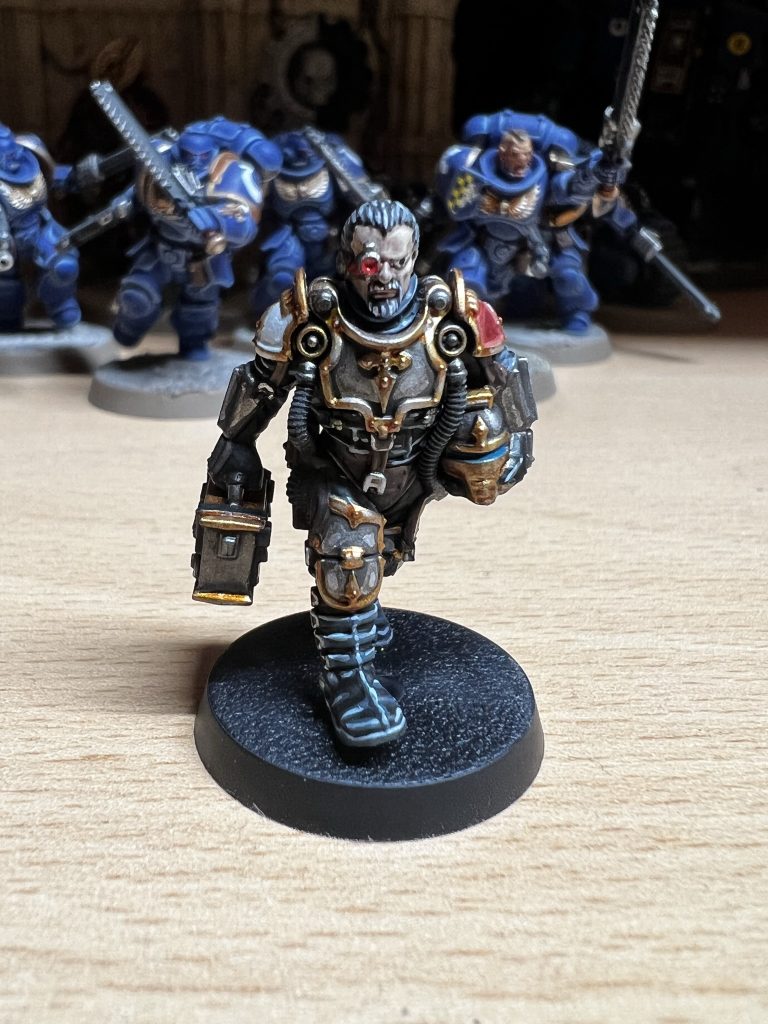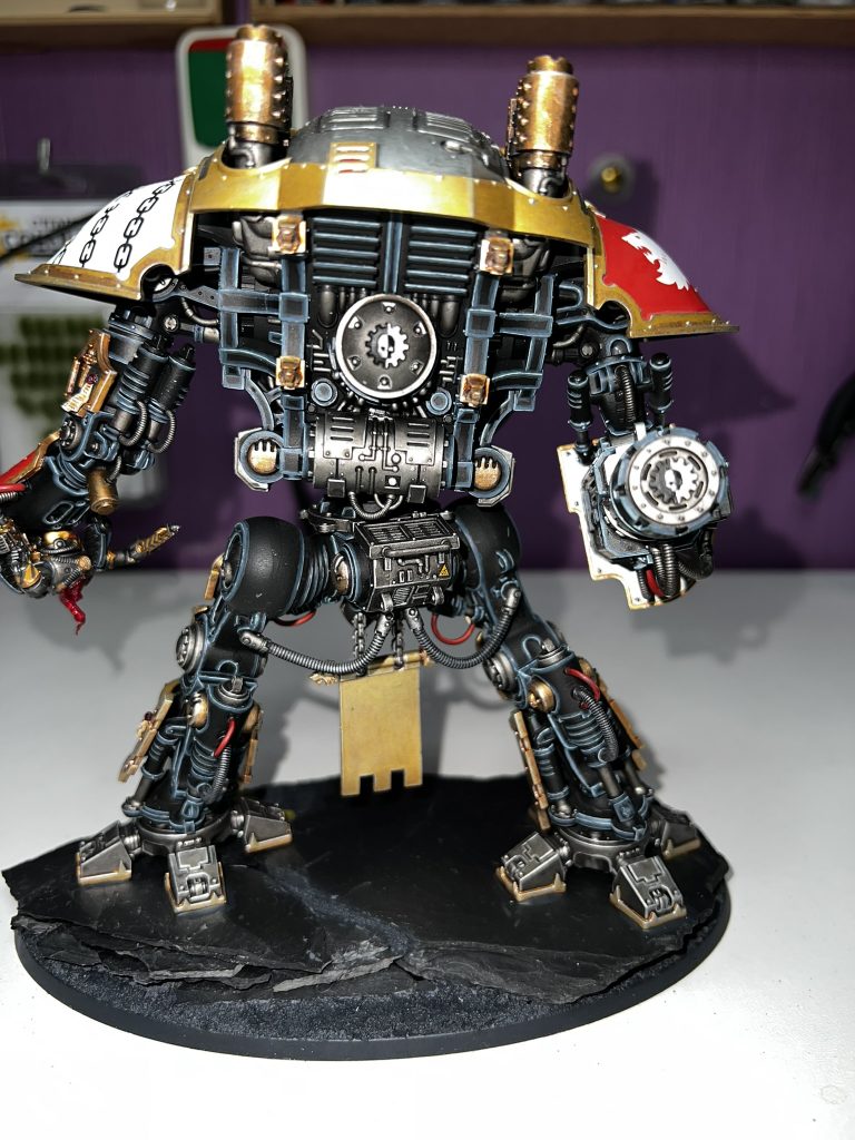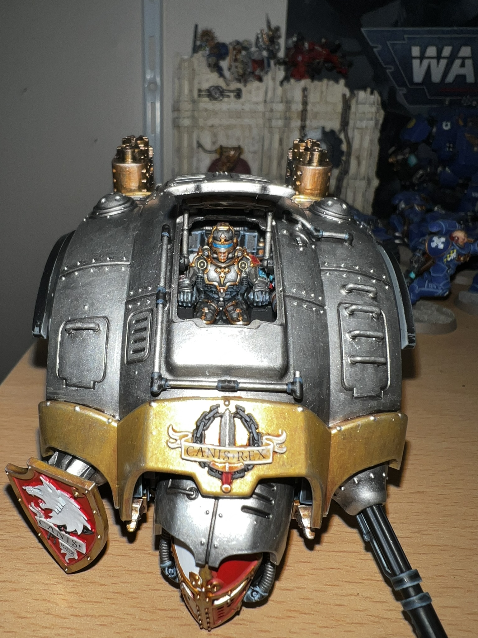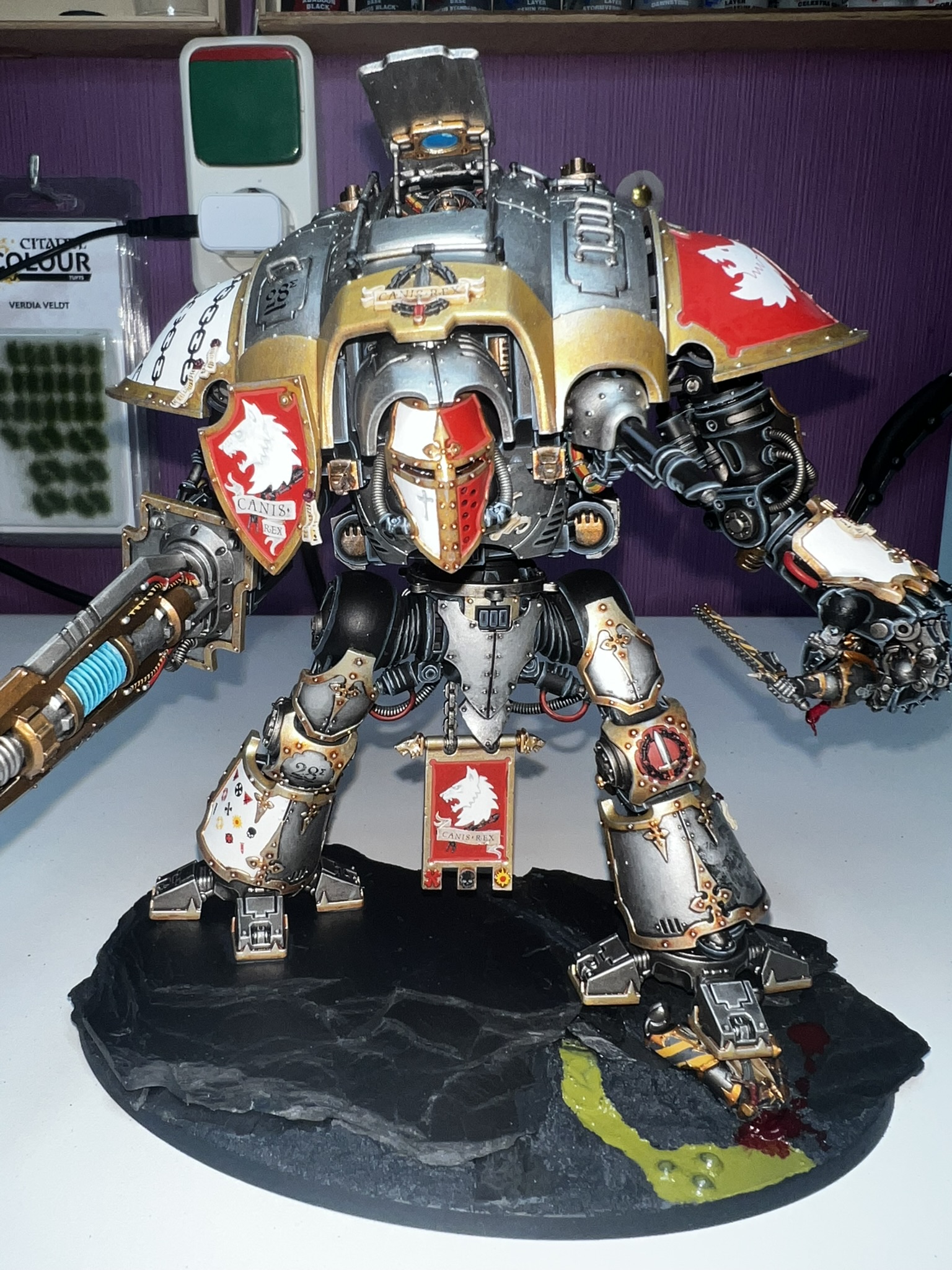 Ich habe mich natürlich für Canis Rex entschieden. Canis Rex ist ein Knight Preceptor mit Eigennamen der dem Folterkeller der Iron Warriors entkommen ist und seit diesem Tag die Anhänger des Chaos mit Kraft und Wut bestraft.