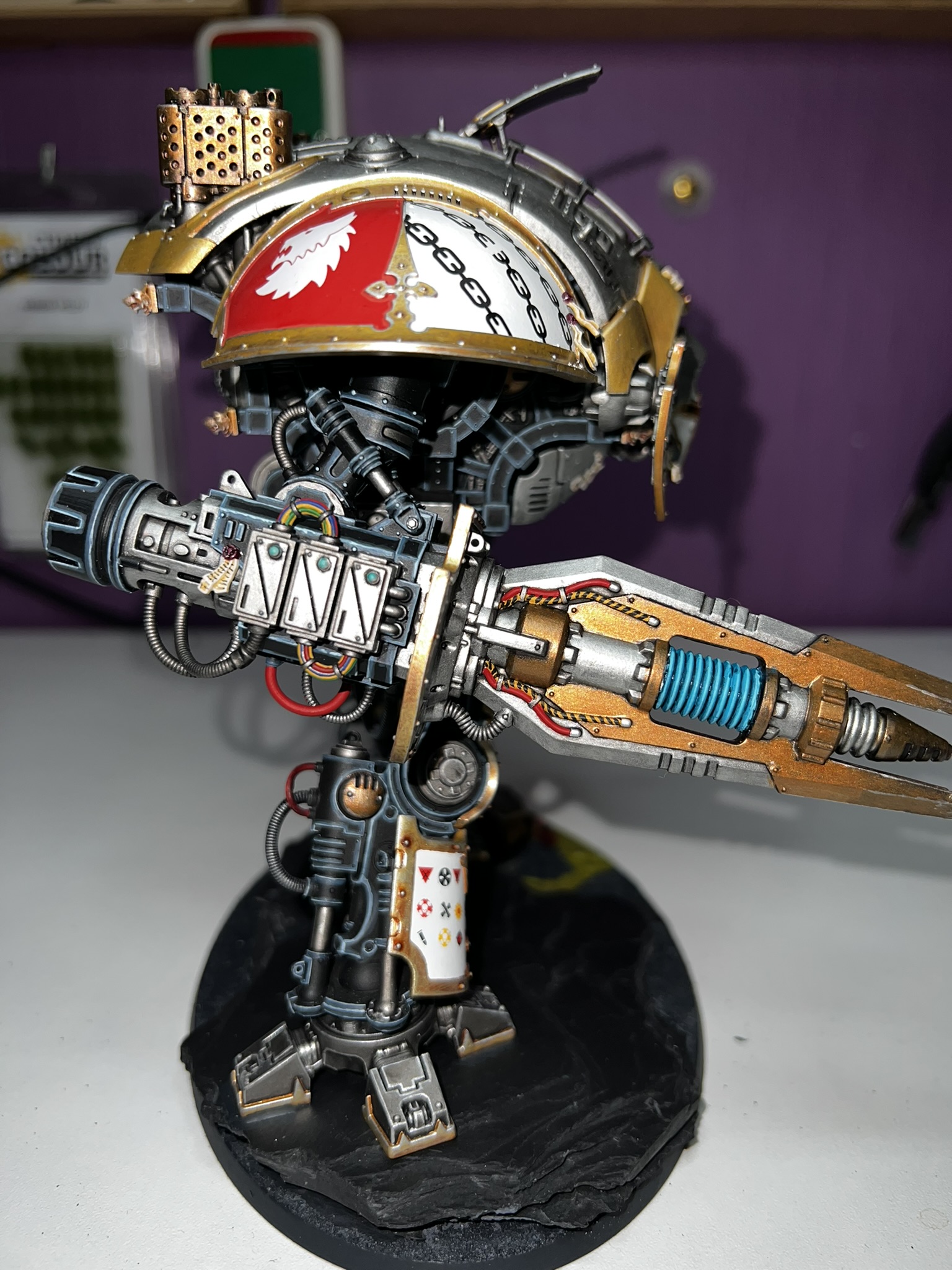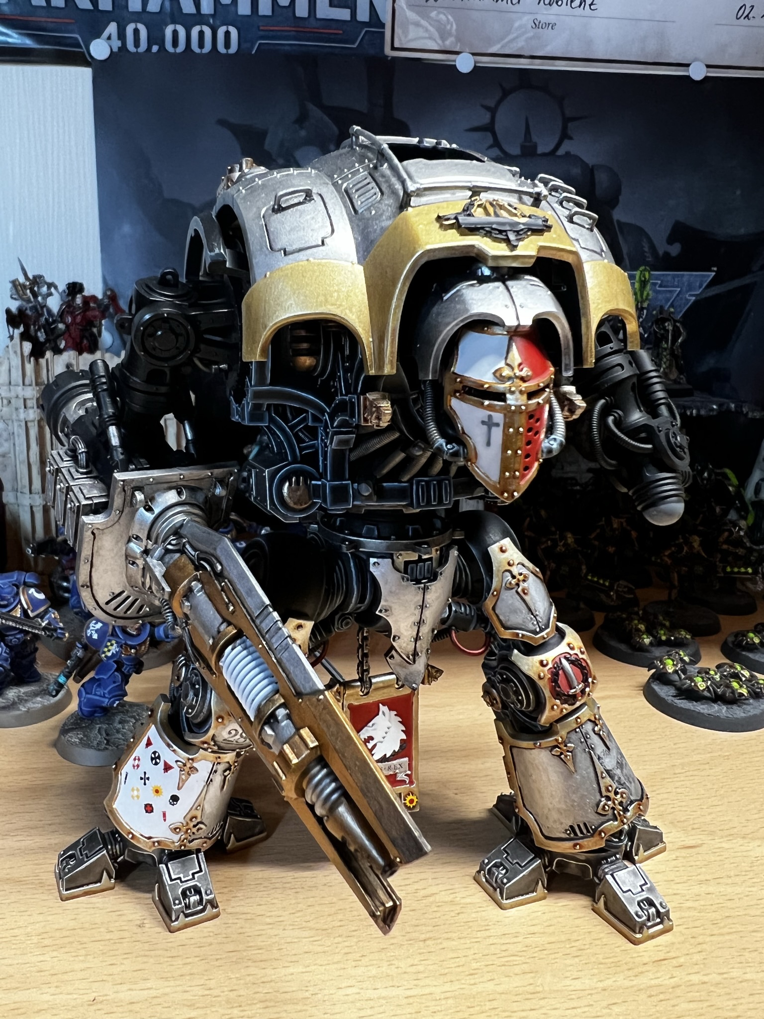 Dieses wahrlich große Modell, kann auf verschiede Arten gebaut und bemalt werden. Mit diesem Bausatz ist es möglich mehrere Knights zu bauen, man muss sich nur entscheiden, welchen man haben möchte. Die Wahl muss unter Knight Preceptor, Canis Rex, Errant, Paladin, Warden, Gallant oder Crusader getroffen werden.