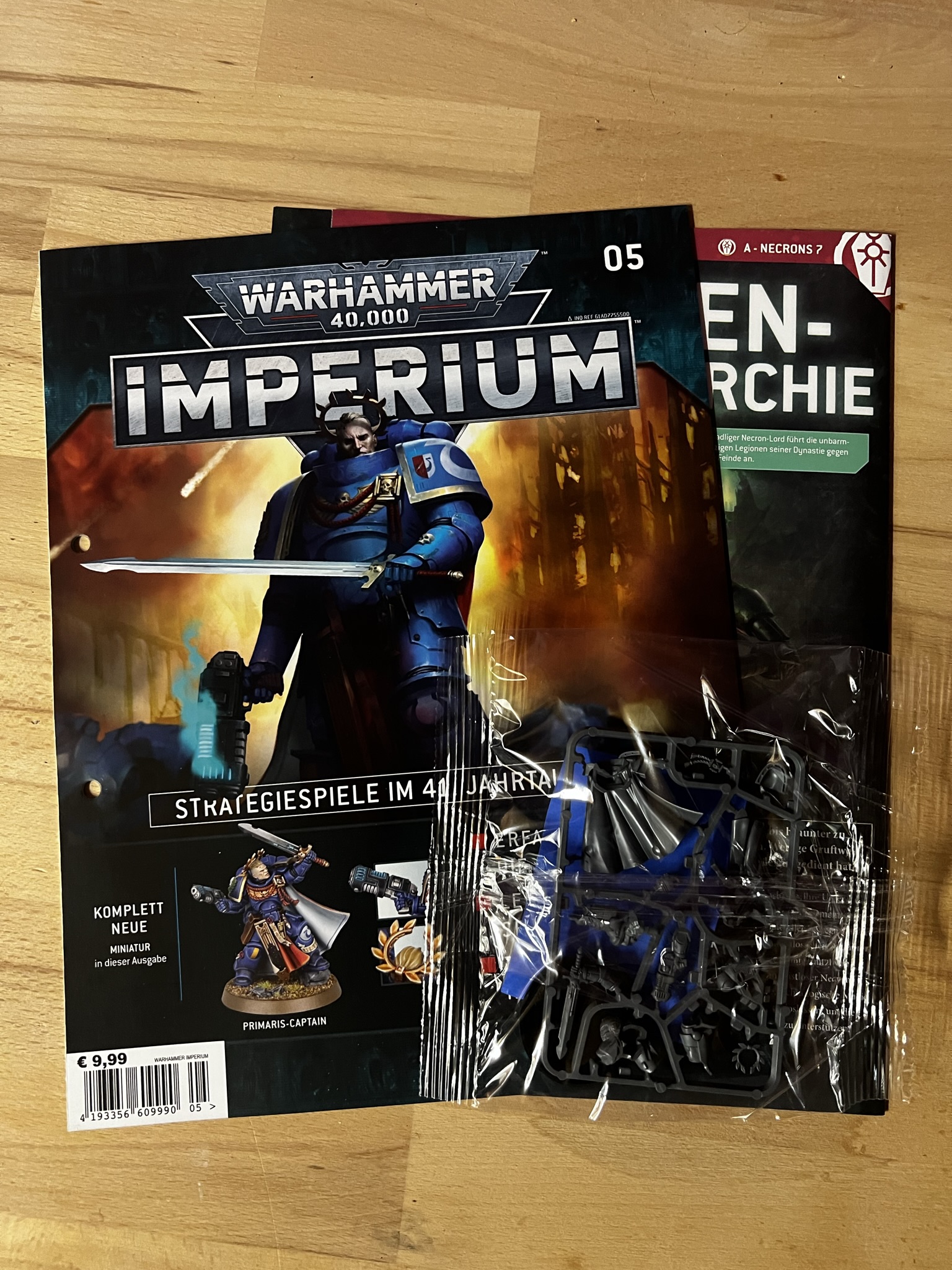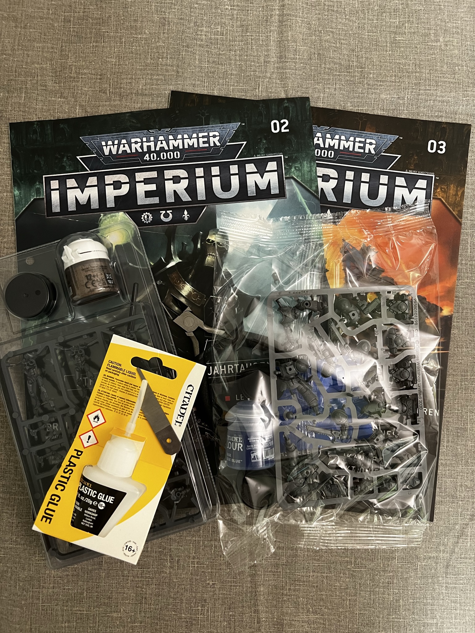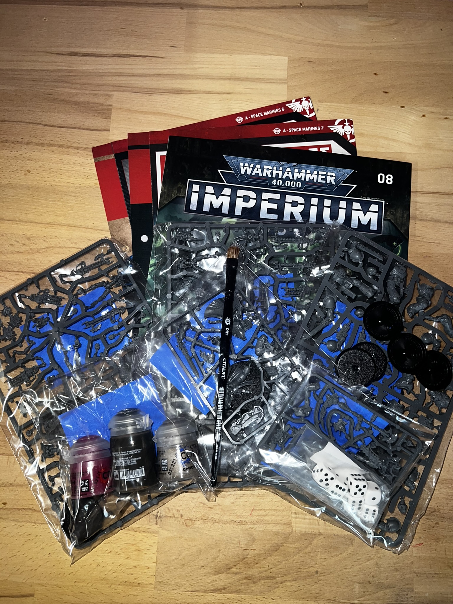 Ich habe mich dazu entschieden die Warhammer 40.000 Imperium Kollektion zu sammeln. Als kleines Extra habe ich mir das Upgrade auf Premium gegönnt. So erhalte ich neben den Miniaturen und den Extras für Abonnenten auch noch ein paar zusätzliche Armeen einer anderen Fraktion.