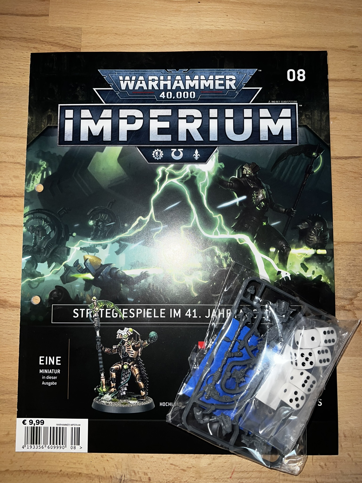 8. Heft der Sammlung. Es gab einen Necron Hochlord und weitere Würfel. Die 8. Mission mit dem Titel „Der Hochlord erhebt sich“ wird gespielt.